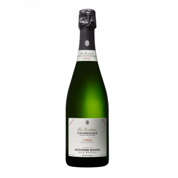 Les Contrées 7 Cépages 2019 de Alexandre Bonnet es un champagne único que reúne las siete variedades tradicionales de la región: Pinot Noir, Chardonnay, Meunier, Pinot Blanc, Pinot Gris, Arbane y Petit Meslier. Este Brut Nature destaca por su complejidad aromática, con notas de frutas blancas, especias y una mineralidad elegante, resultado de su crianza de 36 meses sobre lías.